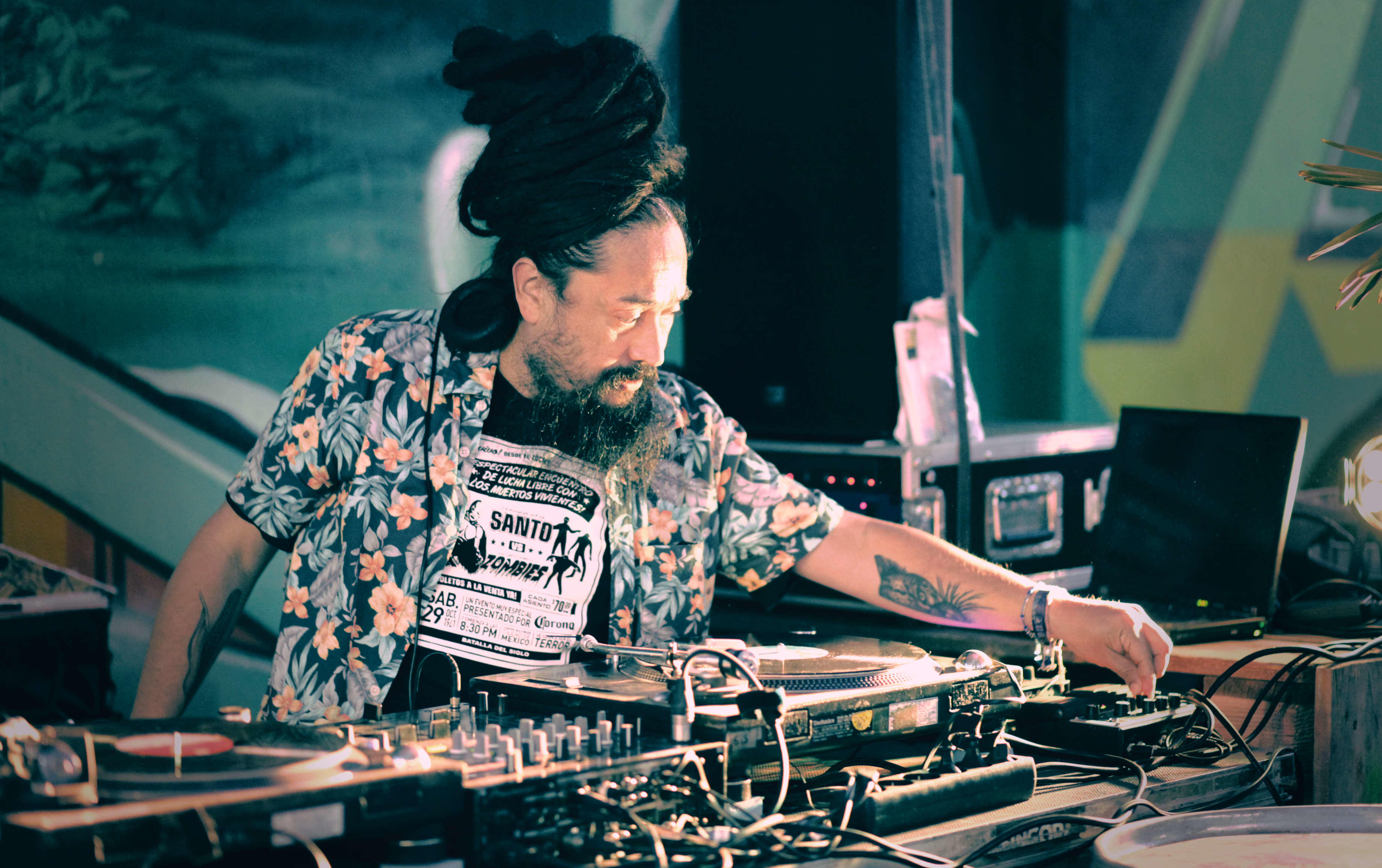 As a DJ, Selektor Bony invites the audience to dance to rhythms from different times and different parts of the world. Latin and tropical beats with influences from cumbia, funk, boogaloo, and cha-cha-cha merge with his passion for reggae and dub, building a bridge between different styles and combining traditional and old rhythms with contemporary sounds.