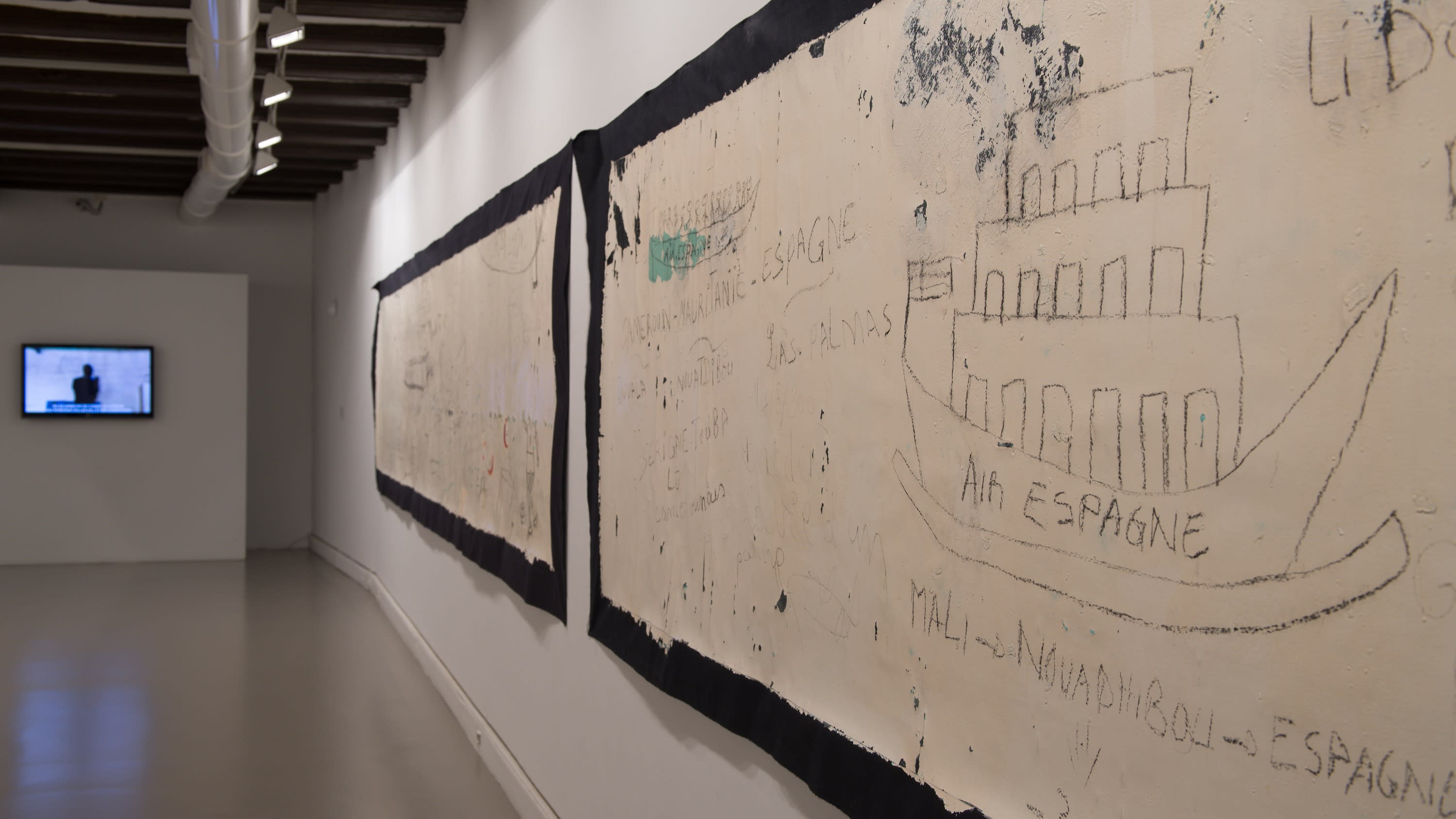 At the heart of the current Forgive Us Our Trespasses exhibition at Berlin’s Haus Der Kulturen Der Welt, A Tous Les Clandestins by Patricia Gomez and María Jesús González stands as a powerful tribute to stories that might have otherwise disappeared. This ongoing project shines a light on the often-overlooked stories of migrants, particularly through their work in detention centers in Fuerteventura and Mauritania. Using their strappo technique, Patricia and María literally peel away layers of walls to uncover messages left behind by people trapped in the limbo of migration—signs of survival and solidarity.